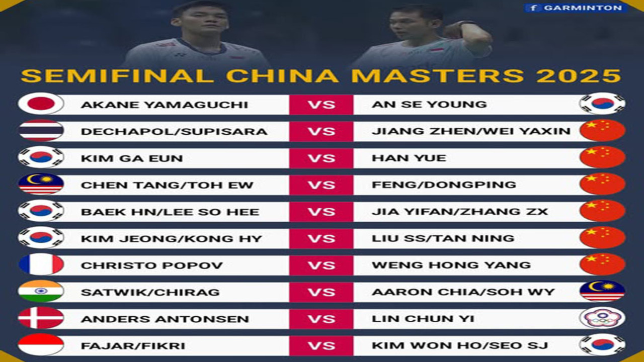 KORANPALPOS.COM- Turnamen bulutangkis bergengsi LI-NING China Masters 2025, yang merupakan bagian dari HSBC BWF World Tour Super 750, memasuki babak semifinal pada Sabtu (20/9/2025).