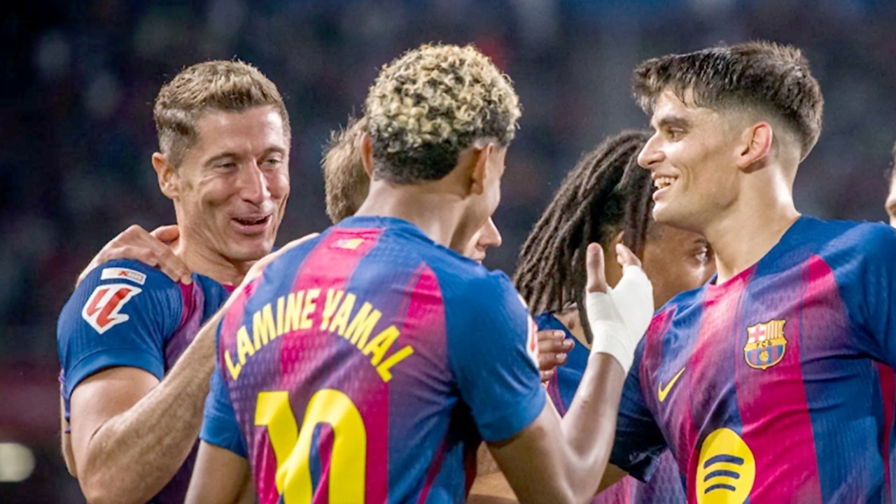 SPANYOL - FC Barcelona menggeser rivalnya Real Madrid di puncak klasemen sementara Liga Spanyol 2025/2026 setelah mereka mengalahkan Real Socieded 2-1 dalam pekan ketujuh di Stadion Olimpiade Lluis Companys, Minggu (28/9/2025) malam WIB.