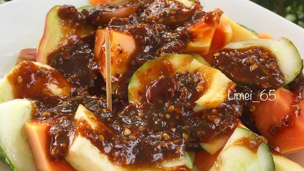 Perpaduan antara buah-buahan segar seperti mangga muda, bengkuang, nanas, kedondong dan timun dengan siraman bumbu kacang yang dicampur petis udang menciptakan rasa yang unik dan menggugah selera.