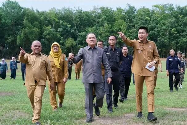Bupati Panca Wijaya Akbar dampingi Ketua Pengadilan Tinggi Palembang, Dr. Herdi Agusten tinjau lahan. Bakal kantor PN Ogan Ilir -Foto : Isro Antoni-