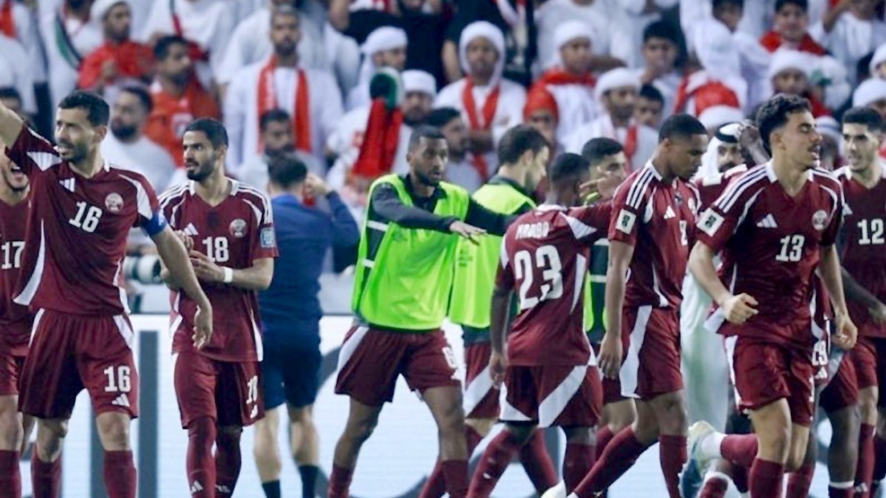 Selebrasi timnas Qatar setelah memastikan tiket ke Piala Dunia 2026 usai kalahkan UEA 2-1 di Jassim bin Hamad Stadium pada Rabu (15/10/2025) dinihari WIB.-Foto: The-afc.com-