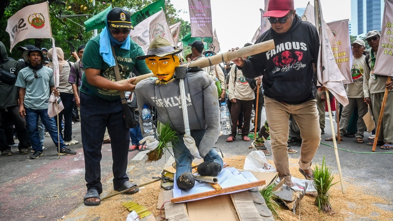 Rokok tembakau berdaun pisang masih tergantung di bibir.