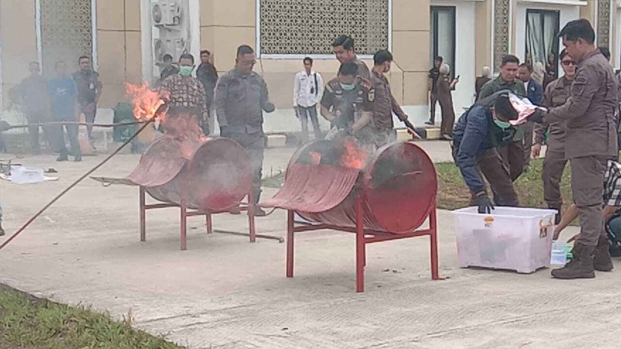 Suasana pemusnahan barang bukti di halaman Kejari OKU.-foto:dokumen palpos-