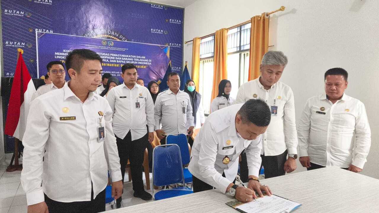 KORANPALPOS.COM - Dalam rangka memperkuat komitmen seluruh jajaran Pemasyarakatan terhadap upaya pemberantasan peredaran gelap narkoba, handphone, dan barang terlarang lainnya, Rutan Kelas IIB Baturaja turut berpartisipasi dalam kegiatan Penandatanganan Komitmen Bersama Petugas Pemasyarakatan yang dilaksanakan secara daring serentak di seluruh Indonesia, Senin (20/10).
