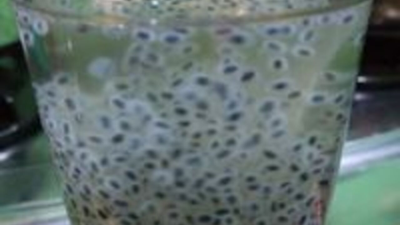 Saat direndam air, biji selasih membentuk selaput bening menyerupai telur kodok.