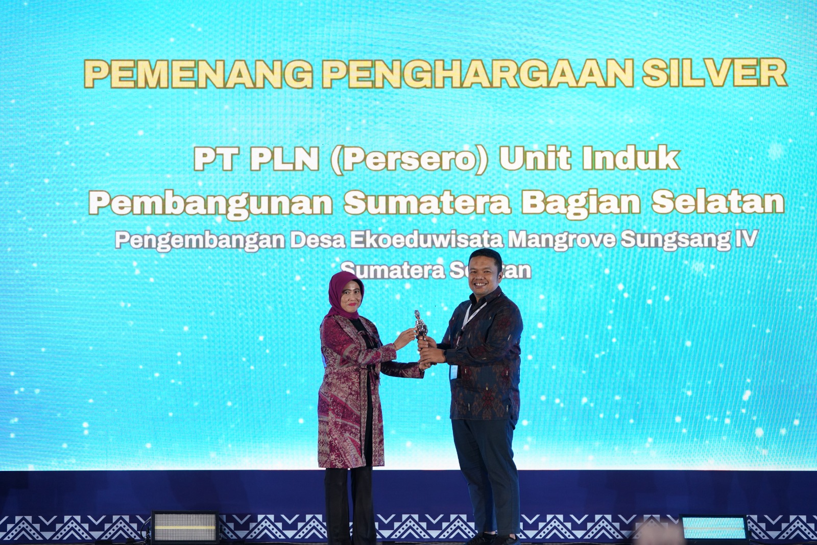 Pada ajang CSR & Pengembangan Desa Berkelanjutan Awards 2025, PLN UIP Sumbagsel berhasil meraih predikat Silver melalui program Pengembangan Desa Ekoeduwisata Mangrove Sungsang IV, Sumatera Selatan, yang digelar di Hotel Bidakara, Jakarta. Foto: Istimewa--