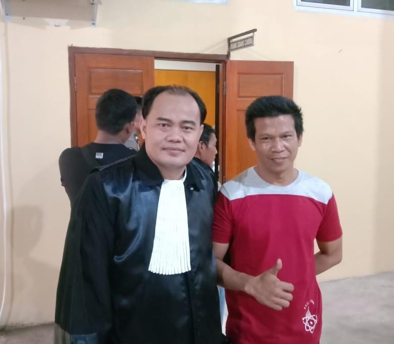 Pemohon Eksekusi Nopri Gunawan bersama dengan Kuasa Hukumnya saat di Pengadilan Negeri Baturaja. -Foto : Eco Marleno-